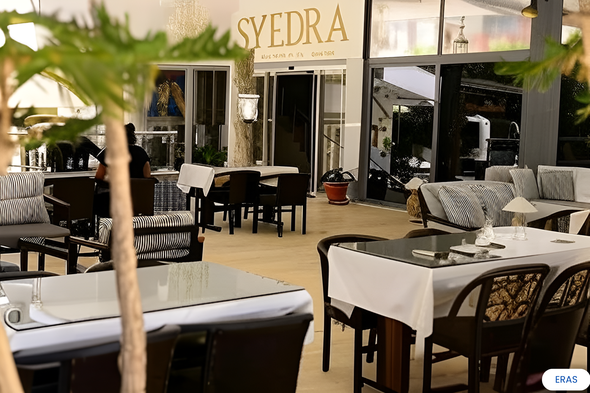 Şık ambiyansıyla misafirlerini sarıp sarmalayan Eras Hotel, çeşitli eğlence ve dinlenme olanaklarıyla birlikte ayrıcalıklı Türk misafirperverliğiyle misafirlerini ağırlıyor. Otel, geleneksel Akdeniz mutfağı ve dünya mutfağının ustaca birleşimi ile tüm misafirlerini unutulmaz bir lezzet yolculuğuna çıkarıyor.